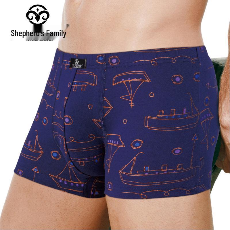 Breathable All-Cotton Mid-Rise Seamless Printed Men's Boxer Briefs