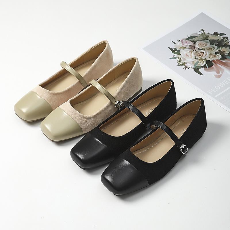 Modische flache Schuhe für Damen Frühling und Herbst Neue Retro Mary Jane Ballerinas Flacher Ausschnitt Quadratische Zehen Übergröße Damenschuhe 41-43