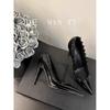 Nieten schwarze High Heels Damen neue vielseitige spitze Zehen flacher Ausschnitt Stiletto Temperament professionelle Lackschuhe