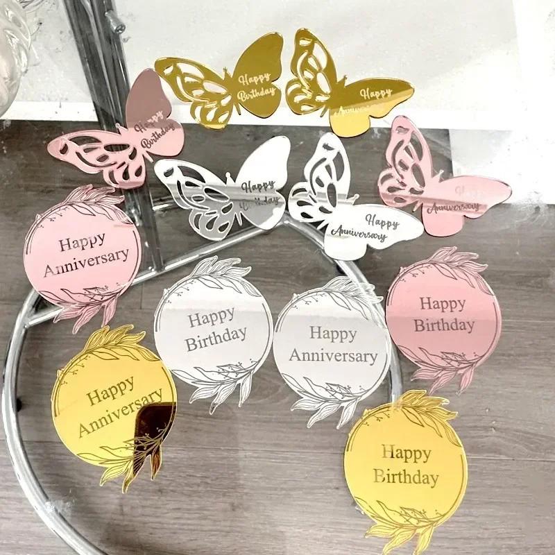 10 Stück Roségold Happy Birthday Party Kuchen Topper Happy Anniversary Acryl Kuchen Topper für Baby Geburtstagsparty Kuchen Dekorationen