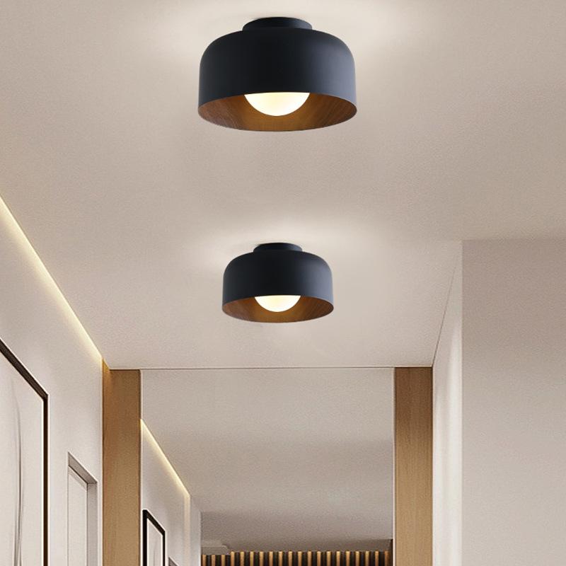Nordic Modern Walnut Wood Texture Led Ceiling Lamp For Bedroom Living Room Kitchen Study Aisle Balcony Round G9 Chandelier Light