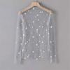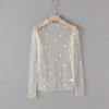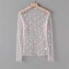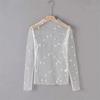 Damen T-Shirt Durchsichtig Transparentes Netzoberteil Langarm Sheer Rollkragen