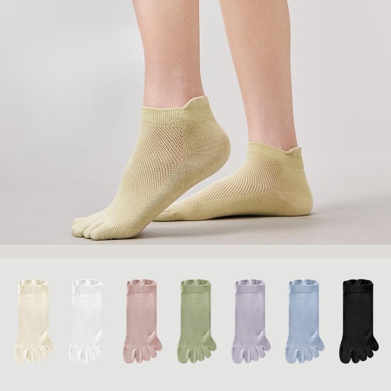 Damen Frühlings- und Sommer-Neue reine Farbe 10A Antibakterielles Netz Atmungsaktiv Fünf-Finger Kurze Baumwollsocken