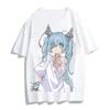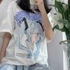 Damen Sommer Baumwoll T-Shirt MIKU Kawaii Schön Niedlich Grafik T-Shirt Y2K Kurzarm Japanisches Harajuku Mädchen Anime T-Shirt