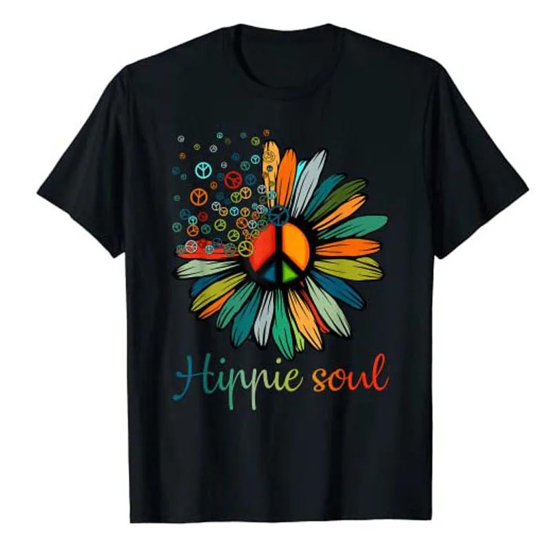 Gänseblümchen Friedenszeichen Hippie Seele T-Shirt Blumenliebhaber Geschenke T-Shirt Tops Sommermode Lustige Blumendruck Outfits Kurzarmblusen