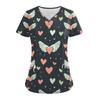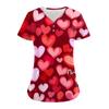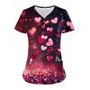 Damen-Oberteil mit Knopfleiste und V-Ausschnitt, modisch, lässig, mit Weihnachts- und Valentinstags-Print, Top für Krankenschwestern, Kasacks für Damen, 2 Taschen