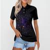 Damen-T-Shirt mit lässigem Blumendruck, V-Ausschnitt, kurzen Ärmeln und dekorativen Knöpfen