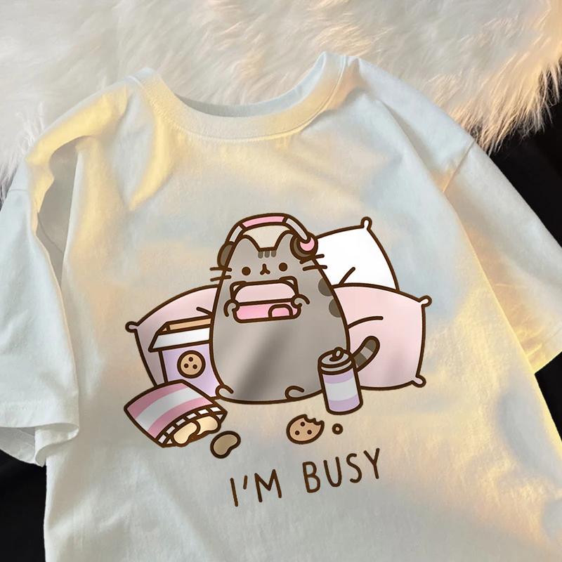 Neu Entschuldigung Ich bin beschäftigt Katze spielt Spiele mit Kopfhörern Mann Frau T-Shirt Hohe Qualität Markenkleidung Lockere T-Shirts Tops Paar