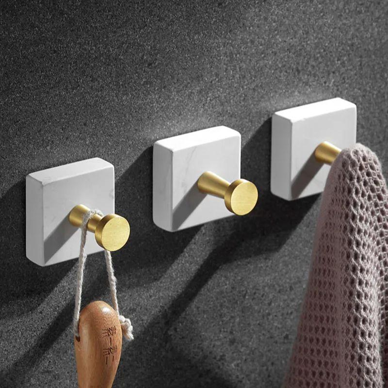 Weißer Marmor Badezimmer Einzelhaken Gebürstetes Gold Wandhänger Mantelhaken Bademantelhaken Schrankdekoration Kleiderbügel Tür Quadratischer Mantelhaken