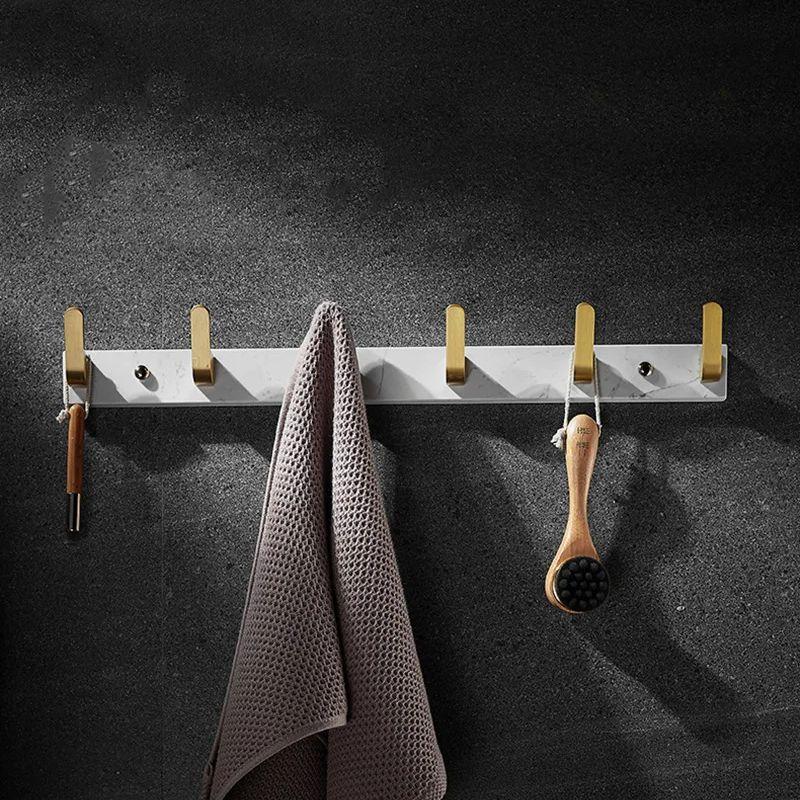 Weißer Marmor Badezimmer Reihenhaken Wandmontiert Toiletten Kleiderhaken Gebürstetes Gold Aluminium Handtuchhaken Aufbewahrungsregal Badezimmerzubehör
