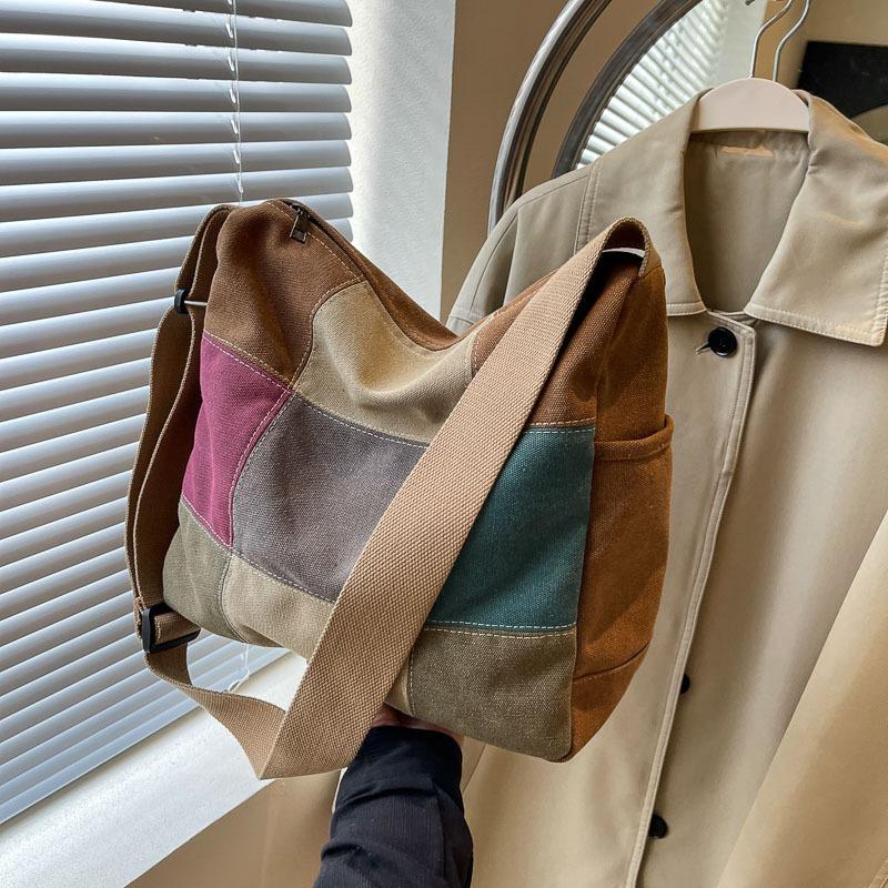 Neue Handtaschenmode Ein-Schulter-Umhängetasche Damen Großes Fassungsvermögen Canvas Farbblock Damenhandtasche