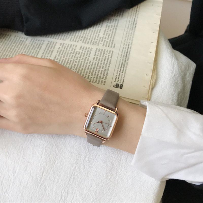 Einfache Retro-Design Uhren für Damen Lederarmbanduhr Damenmode Quadratische Damen Quarzuhr Damenuhren Reloj De Mujer