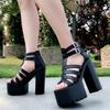 Mode 15CM Sommer Echtleder Damen High Heel Sandalen Wasserdichte Plateau Dünner Riemen Schnalle Reißverschluss Nachtclub Party Tanzschuhe