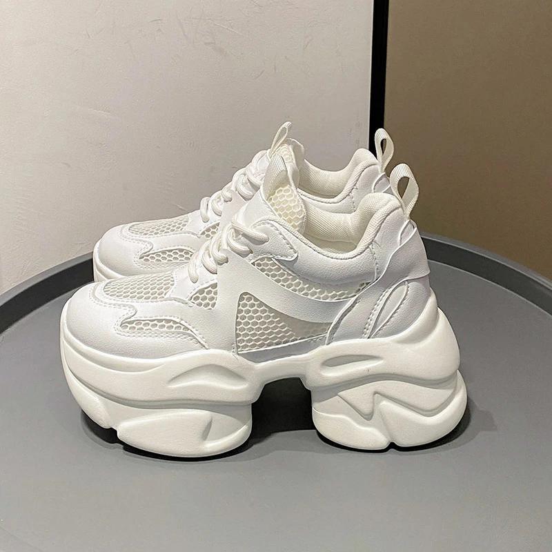 Mode 8CM Sommer-Sneakers Damen Vulkanisierte Schuhe Atmungsaktiv Dicke Sohle Damen-Trainer Plateau Damen Klobige Sneakers Basket Femme