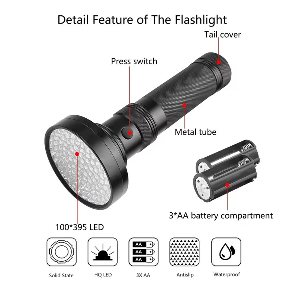 128UV LED Edc Licht Lila Licht Schwarzlichter 395nm Ultraviolett Tragbare Handheld Taschenlampe LED Taschenlampe Detektor für Tierurin