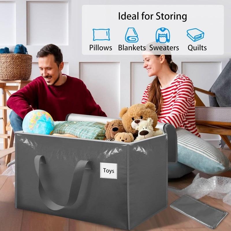 2 Stück Gewebte PP Aufbewahrungstaschen Wasserdicht mit Reißverschlussgriffen Schwerlast Umzugstaschen Alternative Umzugskartons zum Gepäckpacken