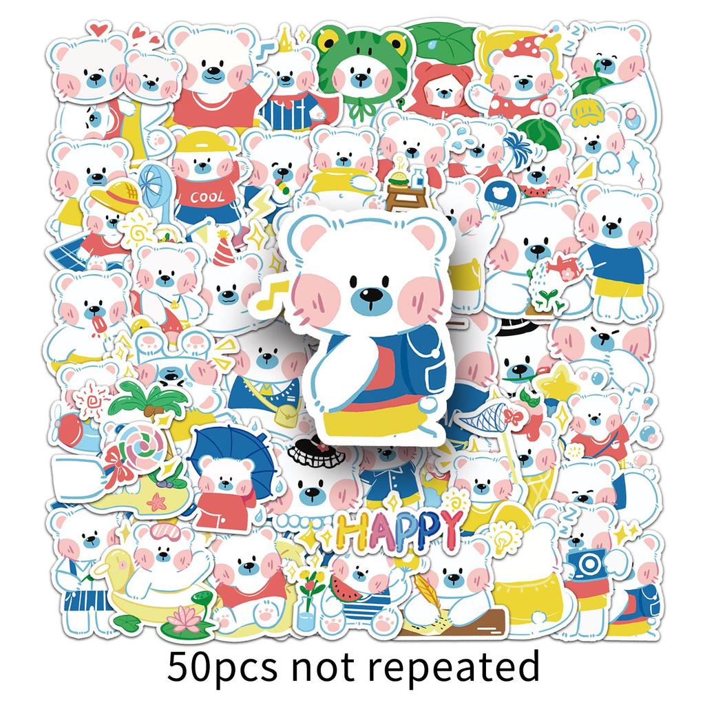 50 Bilder von kleinem weißen Bären Doodle Cartoon Niedlich Kinder Gaze Dekorative Koffer Handyhülle Aufkleber