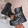 Mode Plateau Kurze Oberschenkelstiefel Damenmode Runde Zehenpartie Nieten Metall Schnalle Schnürung vorne Absatz Einzelstiefel