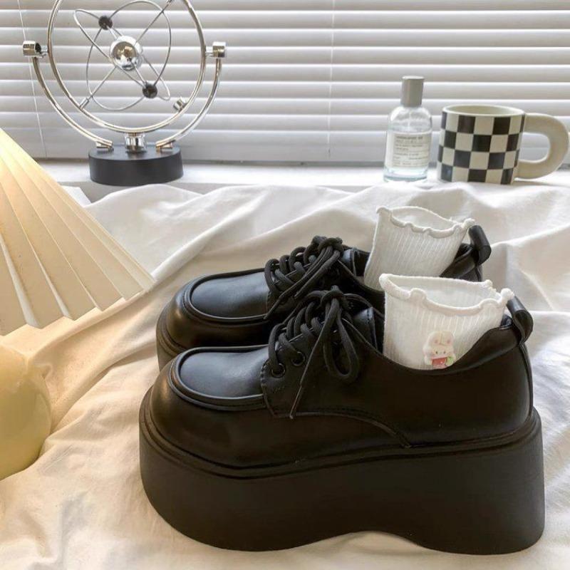 Schwarze College-Stil Plateau kleine Lederschuhe für Damen Herbst neue dicke Absatz Mary Jane Schuhe für Damen