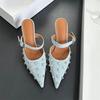 Mode Mode Kristallnieten Designer High Heels Mules Slipper Elegant Spitz Zehen Schnallenriemen Schuhe Damen Pumps Sandalen