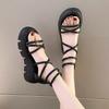 Modische Sandalen Damen 2025 Neue Luxus Sommer Knöchelriemen Runde Spitze Plateau-Sandalen Lässig Rutschfest Römische Gladiator Damen Schuhe