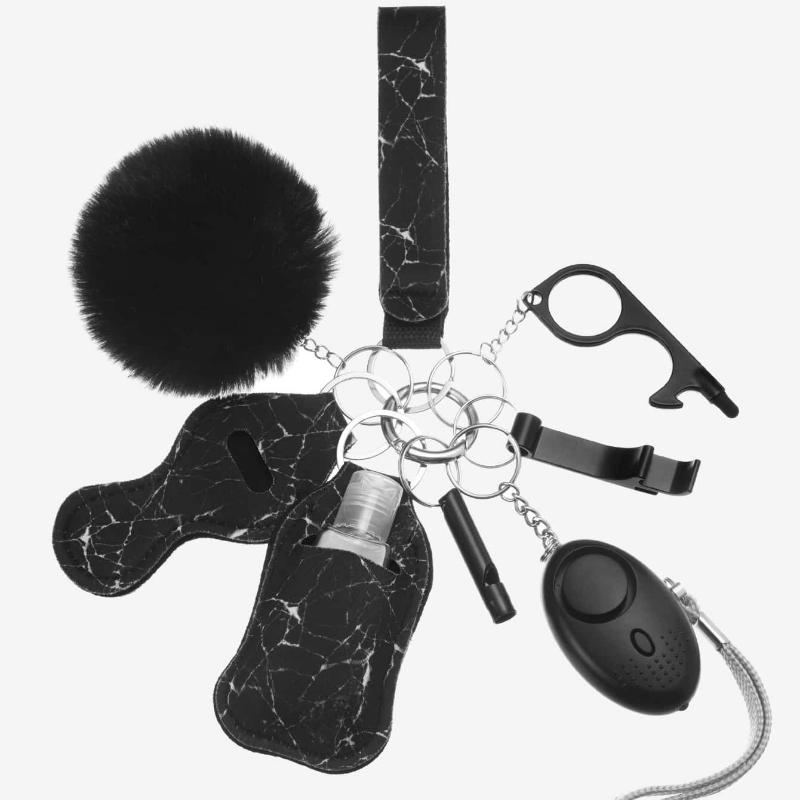 9-teiliges Rosa Persönliches Set & Zubehörset inklusive Alarm-Schlüsselanhänger Taschenaufhänger Flauschiger Ball Schlüsselanhänger Handschlaufe Schlüsselanhänger Taschenzubehör Zubehör