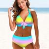 Damen Blumen Badeanzug Bikini Set Fantastischer Damen Gestreifter Badeanzug Bademode Strandbekleidung Badeanzug Zweiteilig S-5XL