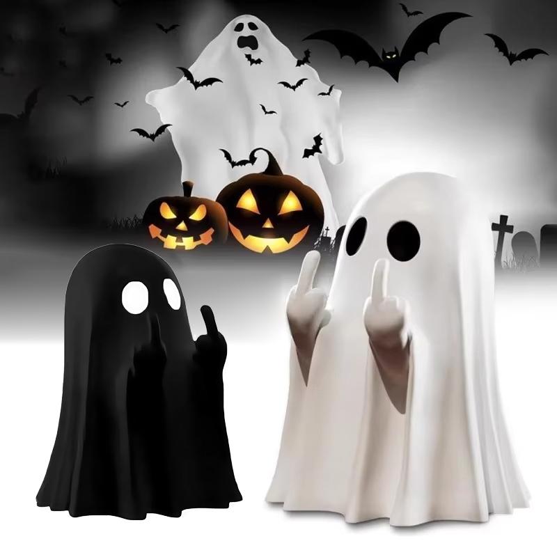New Cute Middle Finger Ghost Statue Creative Halloween Cute Ornaments Black and White Festival Decoration Home Table Ornaments
