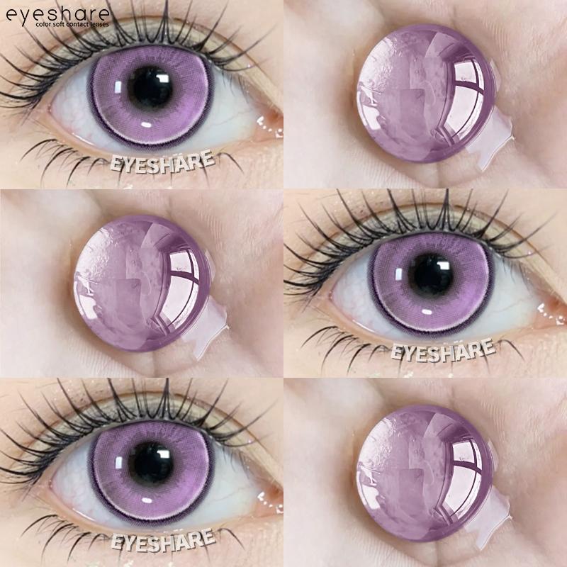 Eyeshare 2pcs Prague Purple Contact Lenses for Colored Eye Makeup Yearly Use 14.2mm Softlens Cosmetics