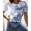 Buntes florales 3D-Digitaldruck Damenmodisches lässiges Rundhals-Kurzarm-T-Shirt