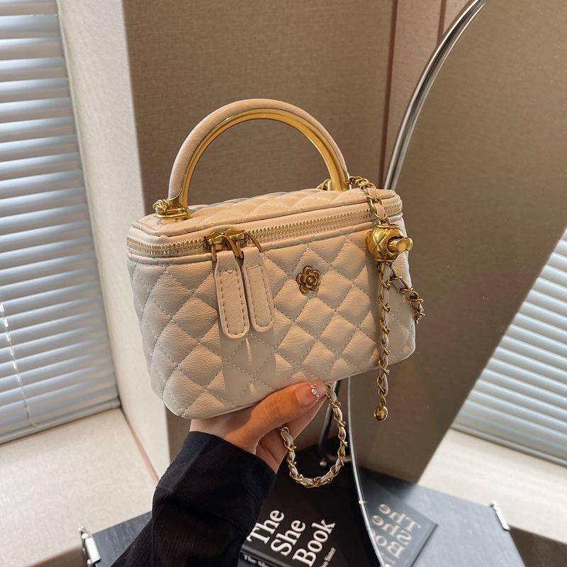 Vintage-Luxus Erscheinungsdetails: Diese Tasche verfügt über eine gesteppte Silhouette mit Metallbeschlägen, einen einzigartigen oberen Griff und dekorative Ketten, die einen Hauch von Retro-Opulenz verleihen.. Die vielfältigen Farboptionen machen es zu einem vielseitigen Modeartikel für diejenigen, die klassische und glamouröse Designs schätzen.