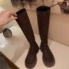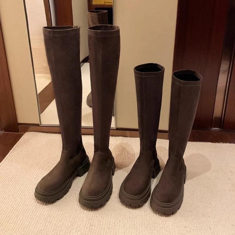 Rindsleder~ Stiefel Damen Dicksohlige Kleine Skinny Ritterstiefel Elastisches Wildleder Overknee-Stiefel