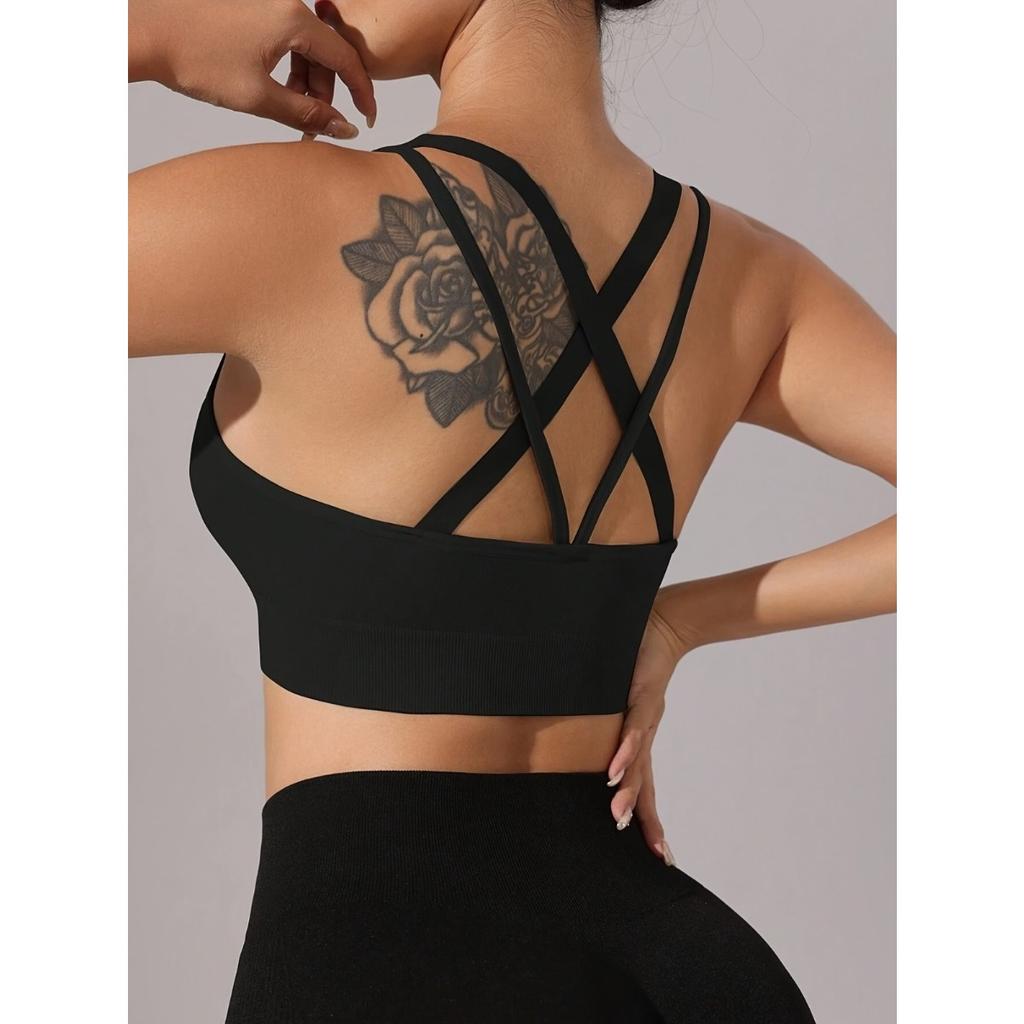 Women's Sports Bra - Medium Support Cross Back Design, Non Removable Thick Coaster, Breathable Medium Elasticity Solid Color Yoga Fitness