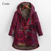 Winter Warm Damen Nationalstil Retro Langer Bedruckter Hoodie Mantel Große Größe Schlankes Temperament Oberbekleidung