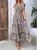 Böhmisches Maxikleid mit Blumendruck, V-Ausschnitt und taillierter Taille, großer schwingender Rock