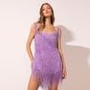 Spring new sexy backless shiny fringed dress, suspender shiny short skirt, women's clothing