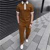 Sommer Herren POLO Shirt Reißverschluss Kontrastfarbe Revers Kurzarm Top Lässig Einfarbig Hosen Set