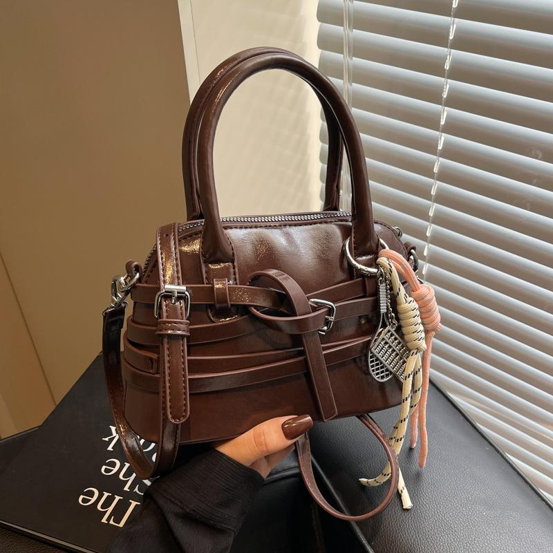 - **Details Vintage Schnalle Bowlingtasche**: Verfügt über eine strukturierte Bowlingtaschen-Silhouette mit einem glänzenden PU-Finish, Akzenten mit Metallschnallen und einem optionalen dekorativen Anhänger-Accessoire, das retro und stilvollen Charme versprüht.. Mehrere Farboptionen (Schwarz, Grau, Rosa, Kaffee, Weinrot) mit oder ohne das Accessoire bedienen vielfältige Stilpräferenzen.