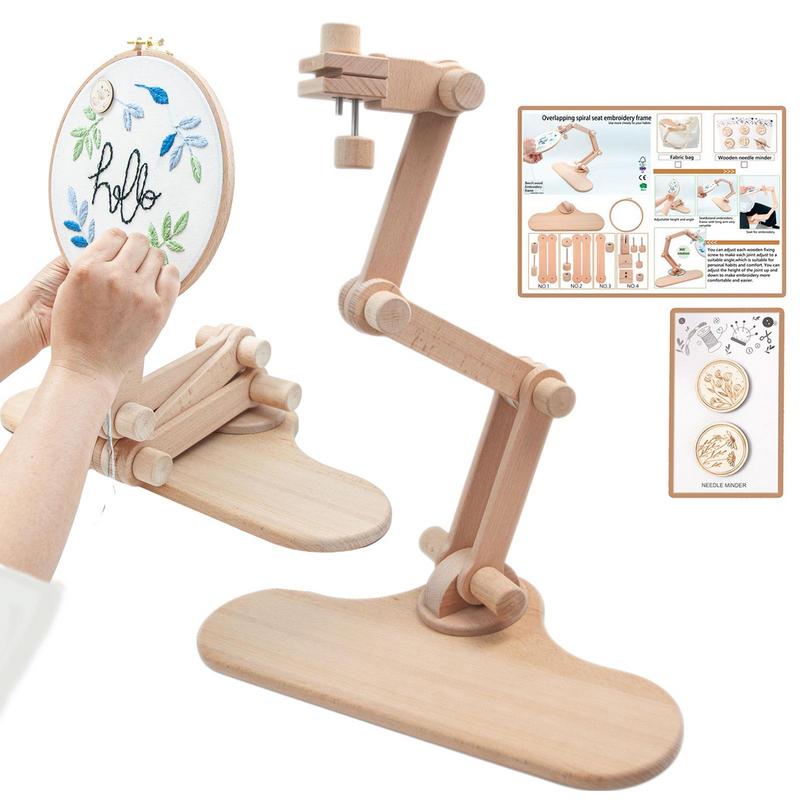 Drehbarer Verstellbarer Holzstickrahmen Desktop-Ständer Kreuzstich-Gestell Rahmen Ringe Erwachsene Mutter Geschenke Nähwerkzeug