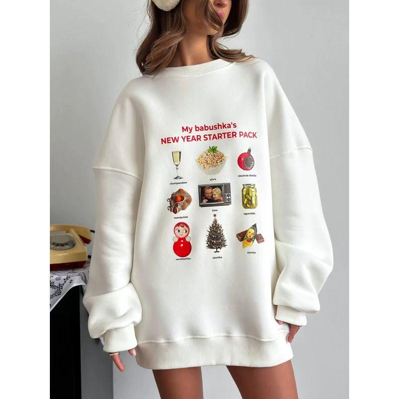 Fashion Style New Fashion Casual Loose Long Sleeves round Neck Sweet Printed Sweatshirt Loose Printed Top
