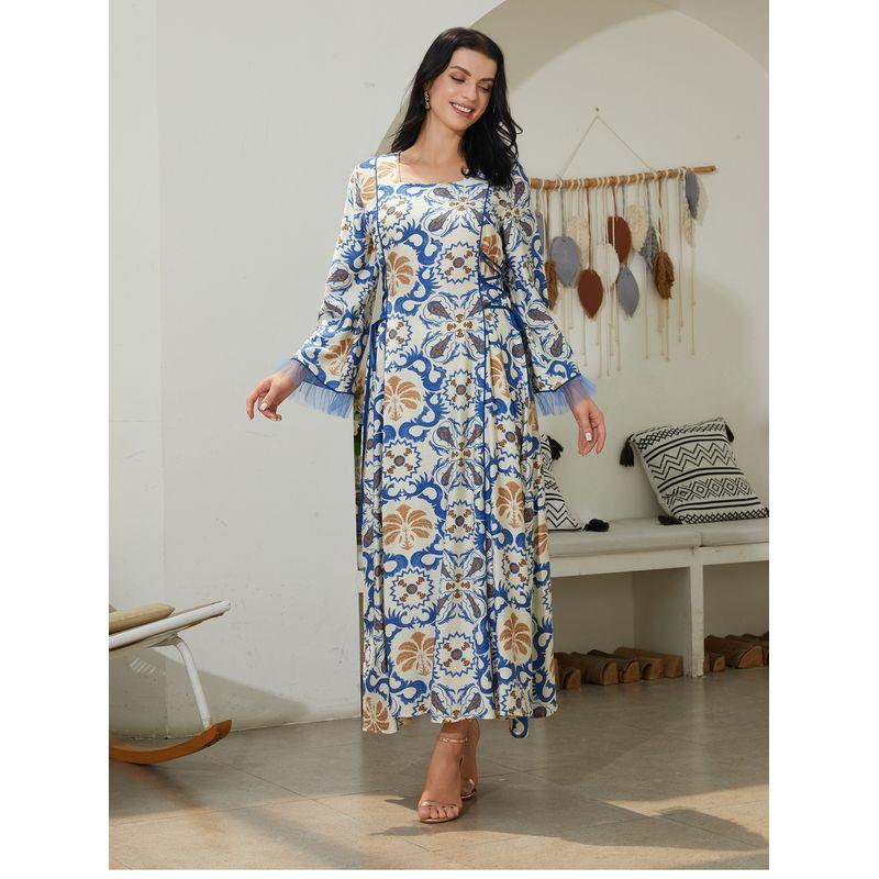 Western Style New Fashion Casual Square Collar Print Dress Square Collar Printed Dress