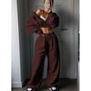 Western Style Fashion Casual Loose Hood Short Jacket Trousers Set Hooded Top and Pants Set