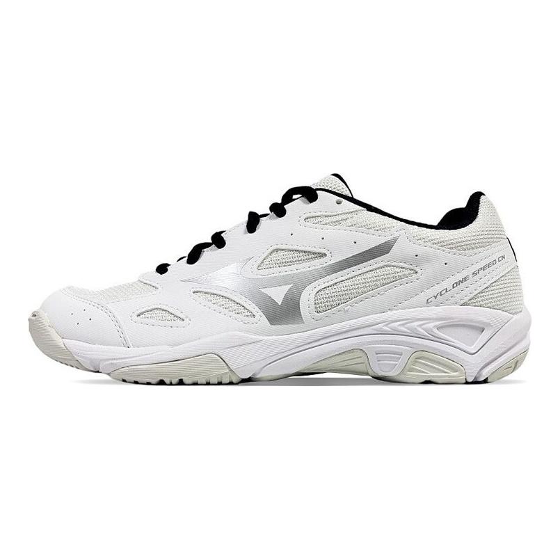 Mizuno Cyclone Speed 1 Stoff Leder Bequem Rutschfest Langlebig Atmungsaktiv Low-Top Badmintonschuhe Unisex Sneaker Weiß Silber V1GA218103