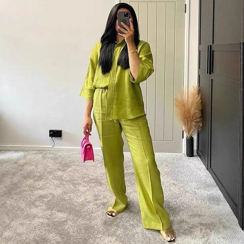 Western Style New Fashion Casual Loose Long sleeve Shirts Trousers Two-Piece Suit Shirt and Pants Set