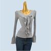 Frill Temperament V-neck Slim fit Knit Women Gyaru Autumn and Winter Western Style Pure Desire Wind Base Inner wear Long sleeve Top