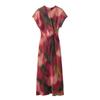 2024 Summer New Arrival Elegant Silm Short Sleeve Bow Tie Silk Satin Texture Print Midi Skirt Dress 2454163