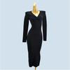 Thick Autumn and Winter Pleat V-neck Knitted dress Women Slim fit Sexy Elegant Elegant Split with Coat Hip Skirt