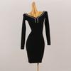 Light Luxury High-End Imported Rhinestone off-Neck Long sleeve dress European and American Open Collarbone Slim fit Slimming Sheath Knitted Skirt