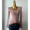 Elegant V-neck Soft Glutinous Horn Long sleeve Knitted Spring and Autumn Design Sense Slim fit Slimming Inner wear Bottoming Shirt Top Women
