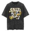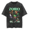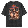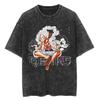 Lässiges gewaschenes Harajuku Herren T-Shirt Baumwolle gewaschen Japanischer Anime One Piece Grafik Locker Streetwear Schwarze Oberteile T-Shirts